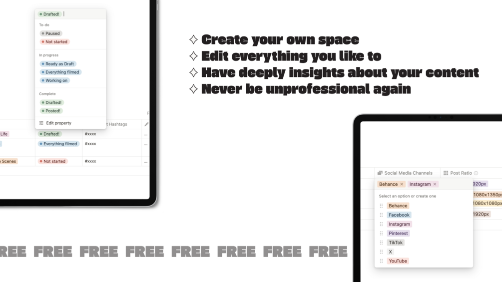 Fully customizable Notion Template for planning your content the right way on Social Media!
